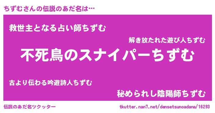 | 女子向けラノベタイトル風あだ名 | 『乙女ゲームの破滅フラグしかない悪役ちずむに転生してしまった…』 |