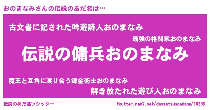| 意味不明あだ名 | 『住所不定無職おのまなみ(43歳)』 |