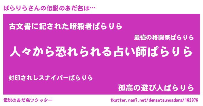 | ヘコむあだ名 | 『ぱらりら(笑)』『ぱら太郎』 |