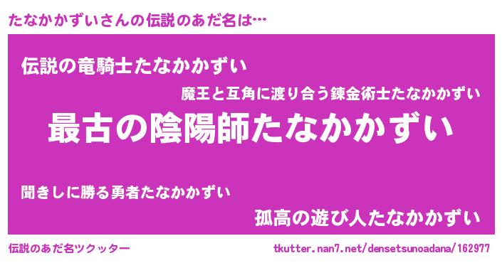 | 意味不明あだ名 | 『自称たなかかずい』 |