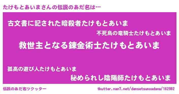 | ヒーロー風カッコイイあだ名 | 『天空の使者たけもとあいま』 |