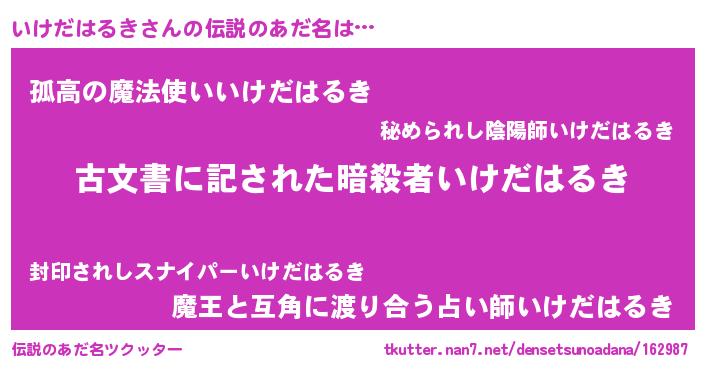 | 男性向けラノベタイトル風あだ名 | 『いけだはるきに滅ぼされるだけの簡単なお仕事です』 |