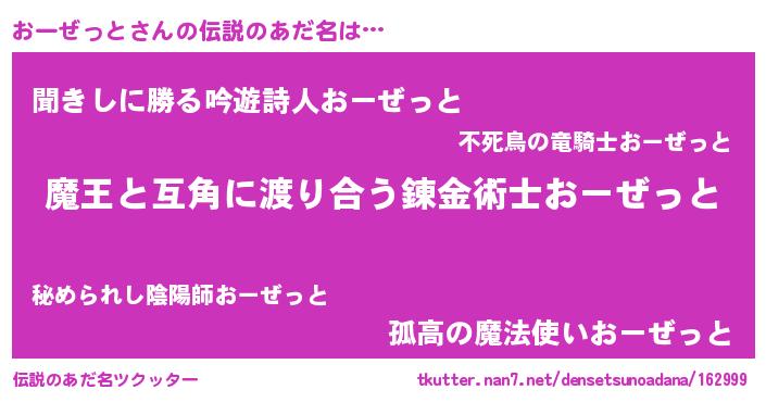 | ヒーロー風カッコイイあだ名 | 『愛の使者おーぜっと』『ネオオーゼット』 |