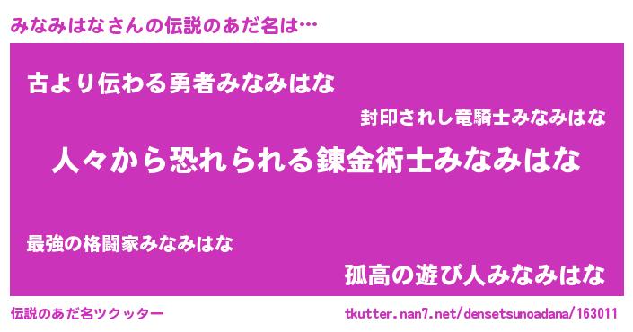 | ヒーロー風カッコイイあだ名 | 『友情の使者みなみはな』『仮面ミナダー』 |