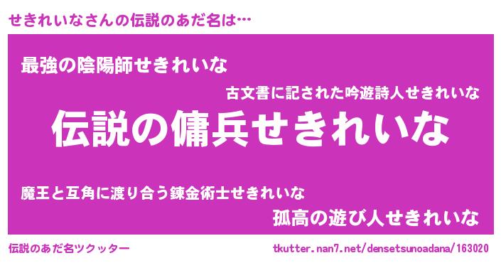 | ファンタジー風あだ名 | 『セキフェル』『エターナルセキレイナー』 |