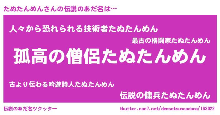 | 胡散臭い通販商品みたいなあだ名 | 『信頼と実績のネックレス…その名も「たぬたんめん」』 |