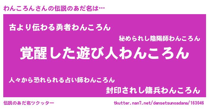 | 意味不明あだ名 | 『自称わんころん』『永久保存わんころん』 |