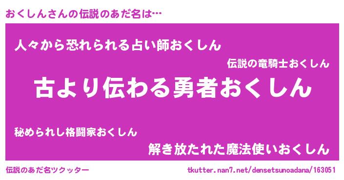 | 意味不明あだ名 | 『住所不定無職おくしん(89歳)』 |