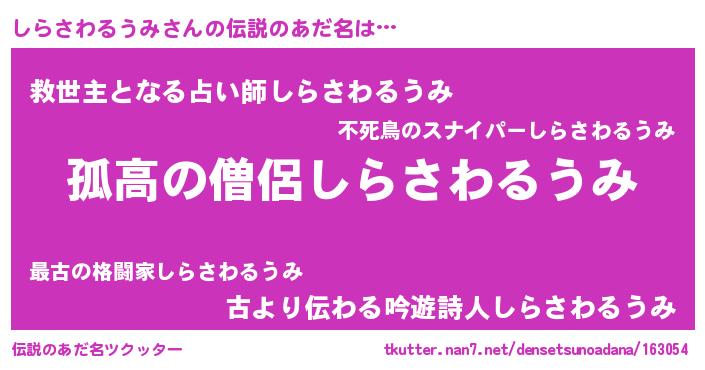 | ポケモン風あだ名 | 『シラセウス』『ヒシラサワルウミ』 |