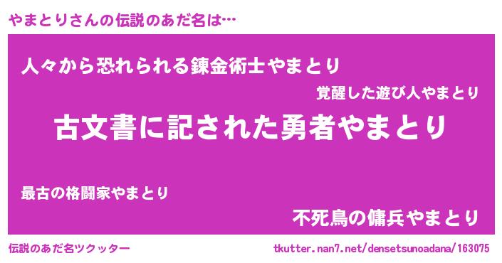 | 意味不明あだ名 | 『自称やまとり』『永久保存やまとり』 |