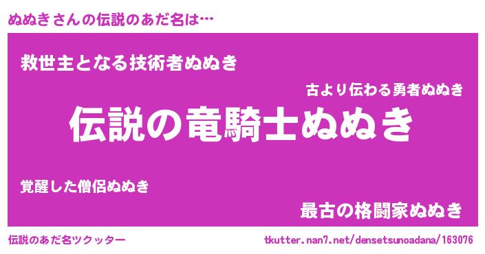 | ポケモン風あだ名 | 『ヌヌチュウ』『ヌックウザ』 |
