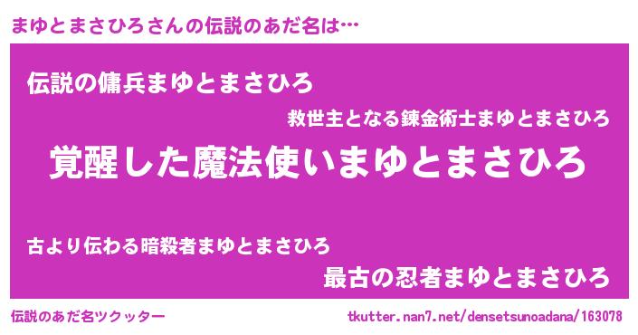 | 意味不明あだ名 | 『自称まゆとまさひろ』 |