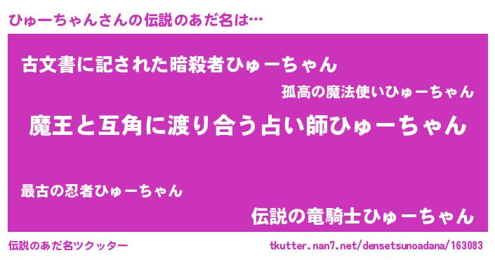 | 意味不明あだ名 | 『住所不定無職ひゅーちゃん(62歳)』 |