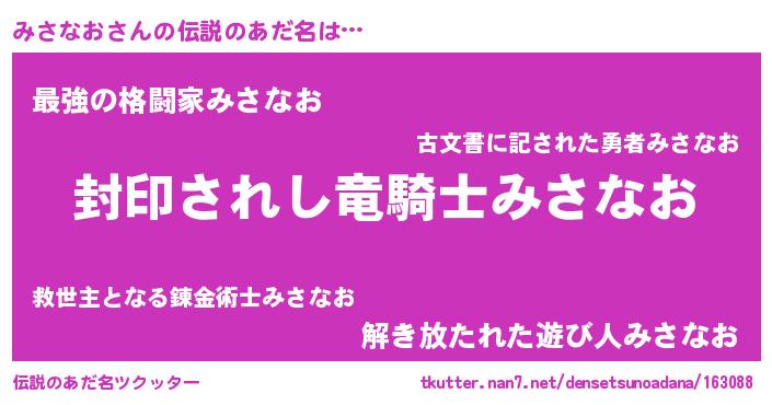 | ヒーロー風カッコイイあだ名 | 『スーパーミサナオ』『魔戒騎士ミサ』 |