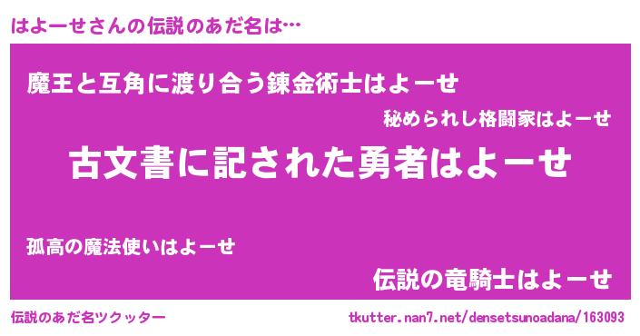 | ヒーロー風カッコイイあだ名 | 『ネオハヨーセ』『仮面ハヨダー』 |
