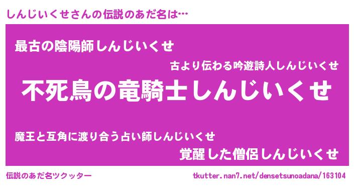 | ヒーロー風カッコイイあだ名 | 『スーパーシンジイクセ』『魔戒騎士シン』 |
