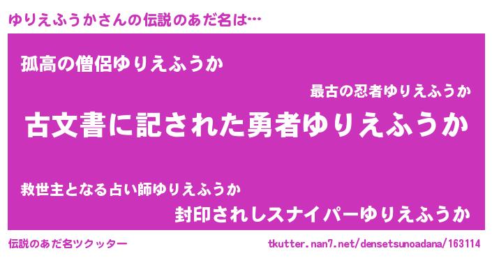 | ヘコむあだ名 | 『ゆりえふうか(遠い目)』『ゆりを』 |