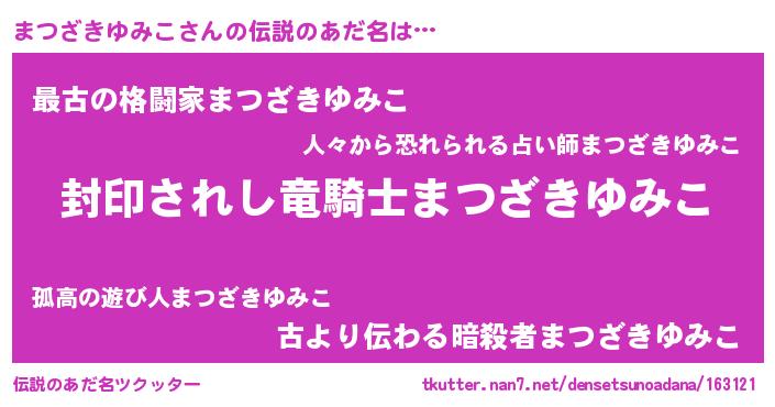 | 意味不明あだ名 | 『住所不定無職まつざきゆみこ(12歳)』 |