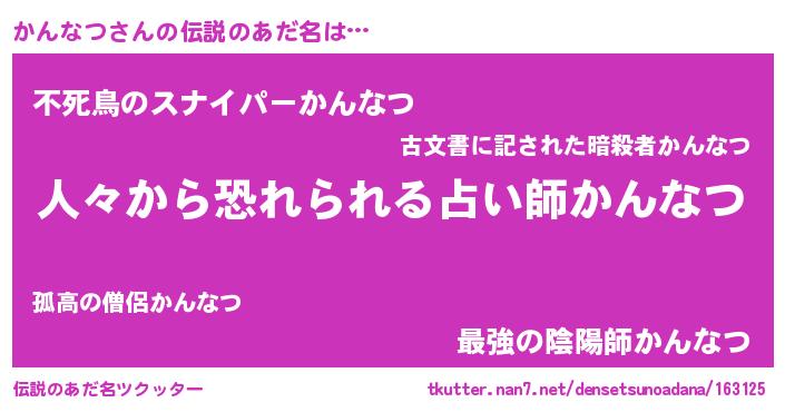 | ヒーロー風カッコイイあだ名 | 『正義の使者かんなつ』『仮面カンダー』 |