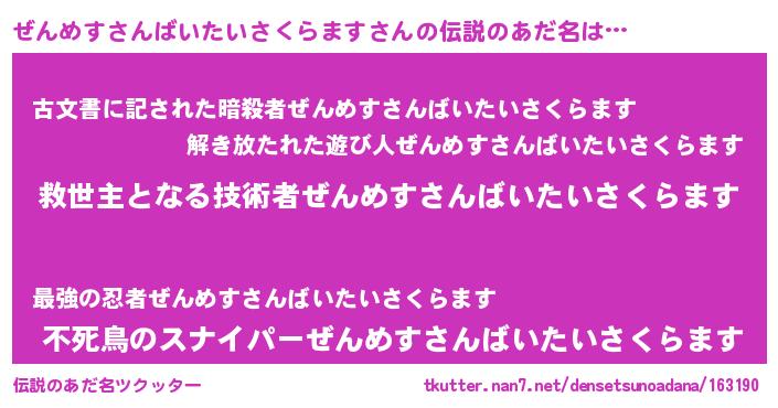 | ヒーロー風カッコイイあだ名 | 『天空の使者ぜんめすさんばいたいさくらます』 |