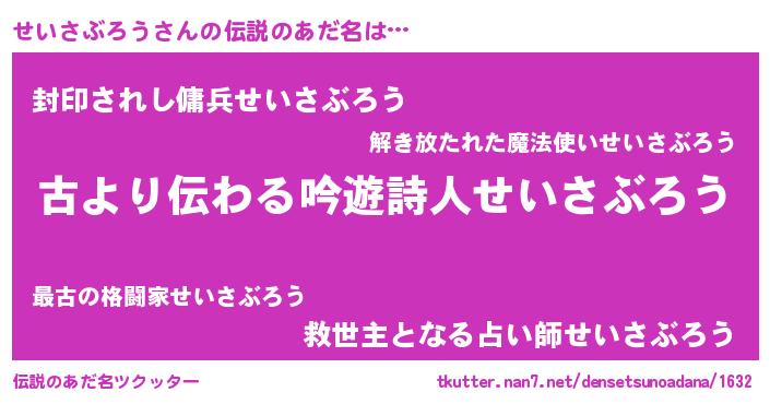 | ヒーロー風カッコイイあだ名 | 『ネオセイサブロウ』『仮面セイダー』 |