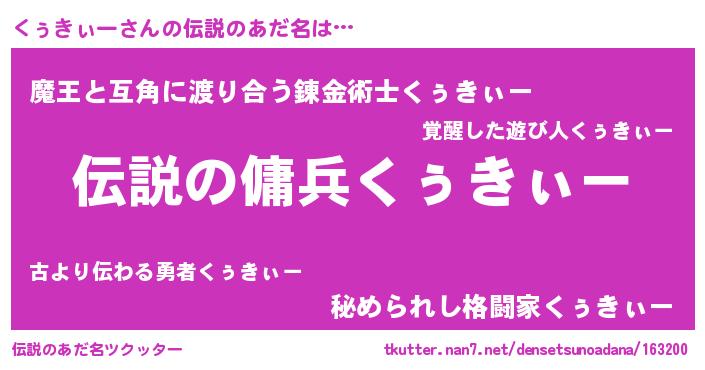 | 胡散臭い通販商品みたいなあだ名 | 『必ず成功する水晶球…その名も「くぅきぃー」』 |