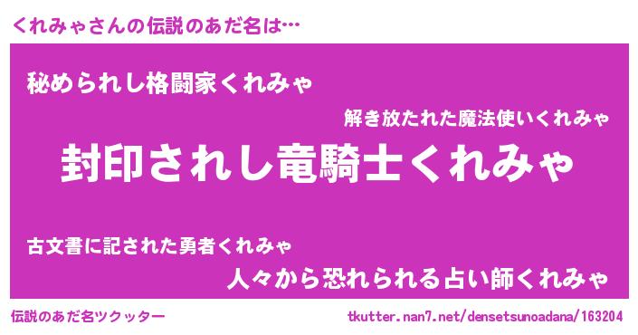 | 意味不明あだ名 | 『ペロリンくれみゃ』『自称くれみゃ』 |