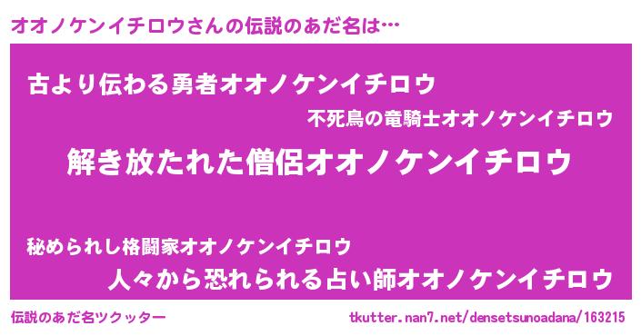 | 男性向けラノベタイトル風あだ名 | 『転生したらオオノケンイチロウだった件』 |