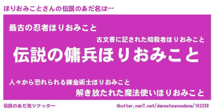 | 男性向けラノベタイトル風あだ名 | 『ホリオミコトスレイヤー』 |