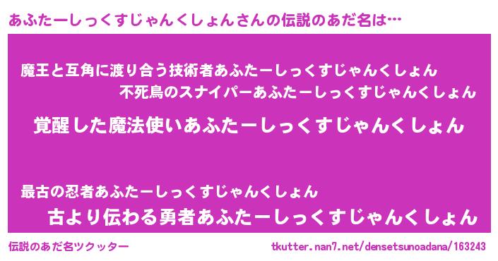 | 意味不明あだ名 | 『とにかく怪しいあふたーしっくすじゃんくしょん』 |