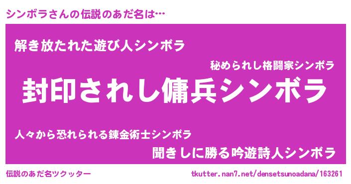 | ヒーロー風カッコイイあだ名 | 『仮面シンダー』『スーパーシンボラ』 |