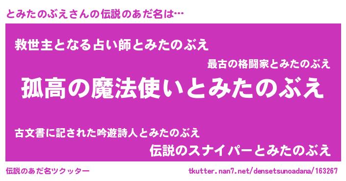 | ヒーロー風カッコイイあだ名 | 『黄金騎士トミ』『スーパートミタノブエ』 |