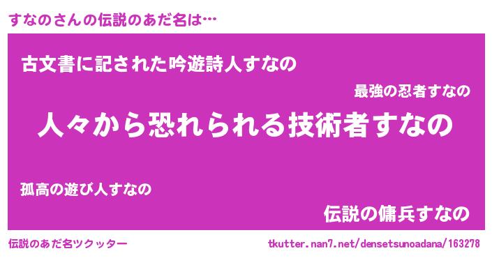 | ヒーロー風カッコイイあだ名 | 『正義の使者すなの』『ネオスナノ』 |