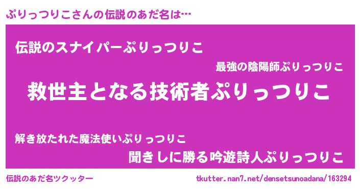 | ヒーロー風カッコイイあだ名 | 『慈愛の使者ぷりっつりこ』 |