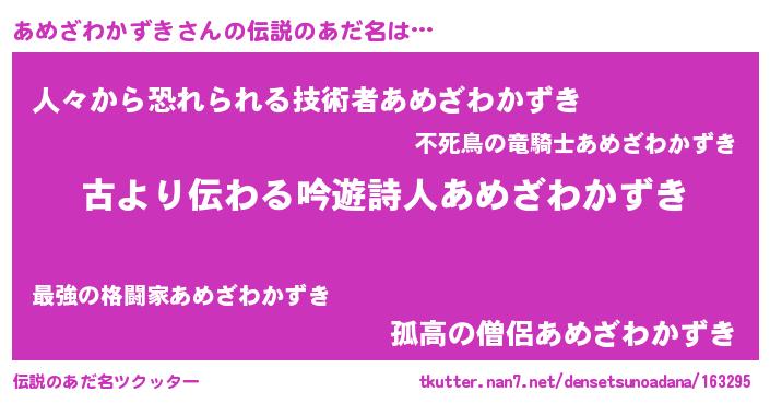 | 意味不明あだ名 | 『永久保存あめざわかずき』 |