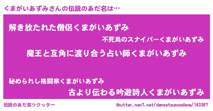 | ヒーロー風カッコイイあだ名 | 『友情の使者くまがいあずみ』 |