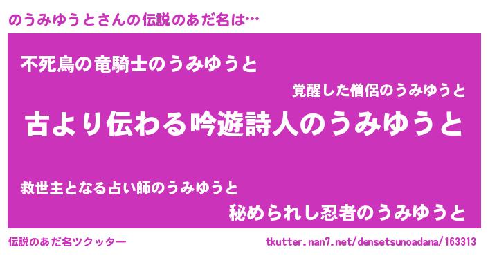 | 男性向けラノベタイトル風あだ名 | 『のうみゆうとに滅ぼされるだけの簡単なお仕事です』 |