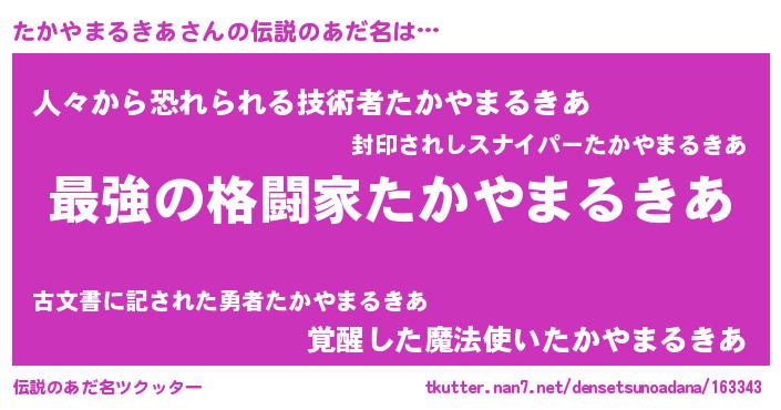 | 意味不明あだ名 | 『たかやまるきあフォーエバー』 |