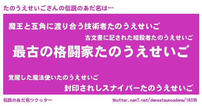 | 意味不明あだ名 | 『住所不定無職たのうえせいご(3歳)』 |