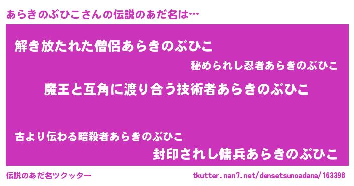 あらきのぶひこさんの伝説のあだ名をツクッター!