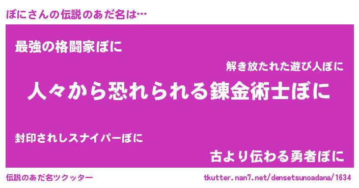 | ヒーロー風カッコイイあだ名 | 『仮面ボニダー』『正義の使者ぼに』 |