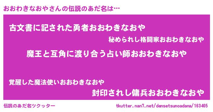 | ヒーロー風カッコイイあだ名 | 『愛の使者おおわきなおや』 |