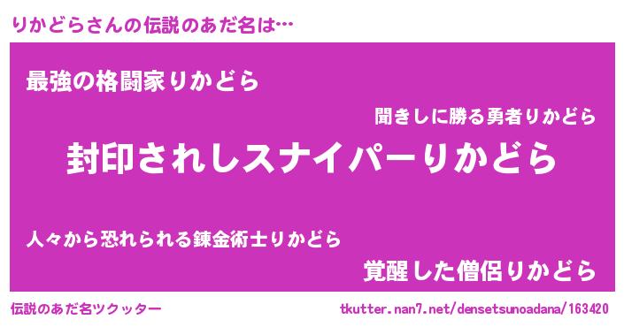 | ヒーロー風カッコイイあだ名 | 『仮面リカダー』『スーパーリカドラ』 |