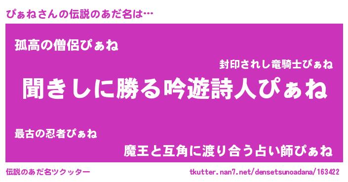 | 意味不明あだ名 | 『自称ぴぁね』『永久保存ぴぁね』 |