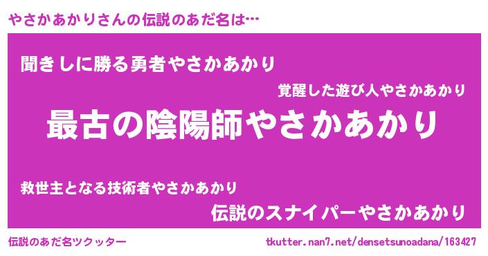 | 男性向けラノベタイトル風あだ名 | 『転生したらやさかあかりだった件』 |