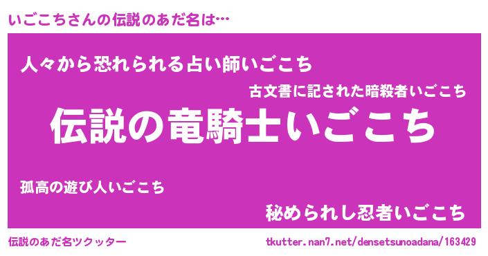 | ヒーロー風カッコイイあだ名 | 『スーパーイゴコチ』『愛の使者いごこち』 |