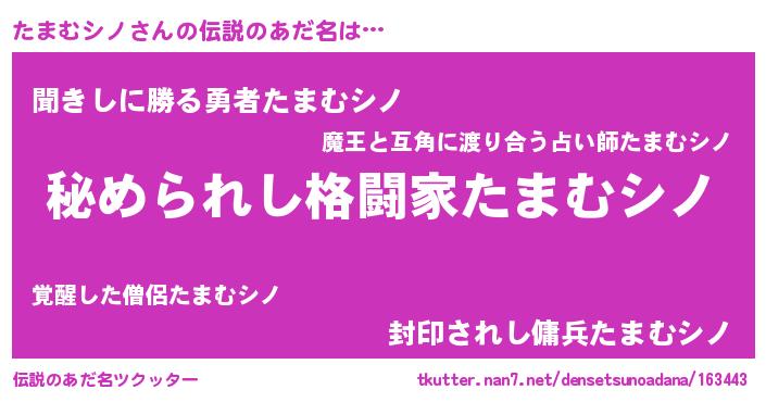 | 肩書あだ名 | 『たまむシノ総理大臣』『たまむシノ教官』 |