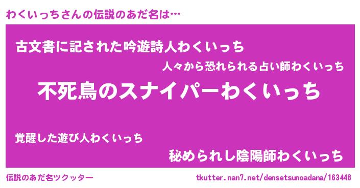 | ヘコむあだ名 | 『わくっふぃ~』『わくいっち(小並感)』 |