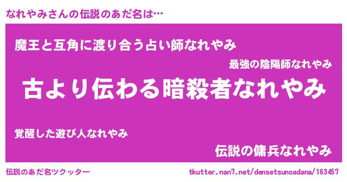 | ヘコむあだ名 | 『なれやみ(爆)』『なれにゅー』 |