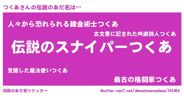 | 胡散臭い通販商品みたいなあだ名 | 『必ず成功する霊験あらたかなお札…その名も「つくあ」』 |